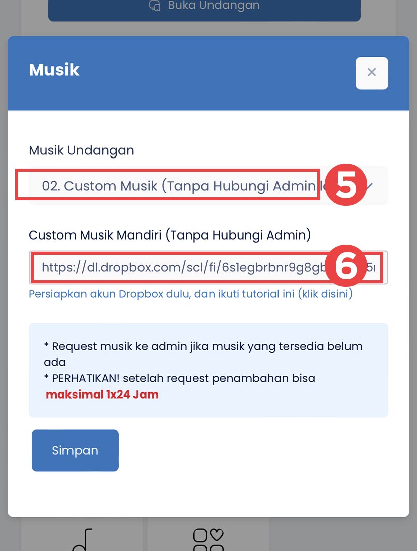 Selanjutnya kita akan mengupload file mp3 tersebut, di sini saya menggunakan Dropbox. Kenapa dropbox? ini file penyimpanan gratis dan bisa terplay di undangan